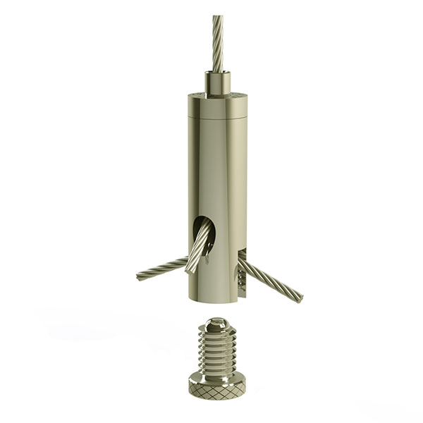 The cable gripper moves freely along the cable when the plunger is pressed. If the plunger is released the cable gripper locks the cables.